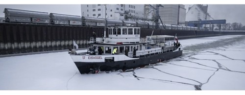 Eisbrecher MS Eisvogel im Dauereinsatz in den Häfen Freudenau, Albern und Lobau