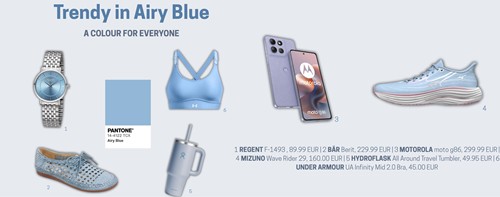 Werbung.Unbezahlt.Fotocredit © Regent, Bär, Motorola, Mizuno, Hydroflask, Under Armour   Zart, leicht, zeitlos: Die Trendfarbe Airy Blue bringt frischen Wind in den Alltag. Der helle, pastellige Blauton erinnert an einen wolkenlosen Himmel…